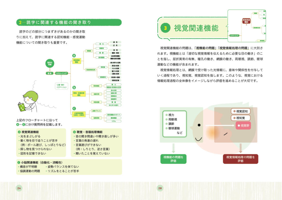 医師、作業療法士、視能訓練士、言語聴覚士、理学療法士、心理士、教員など多職種の専門性を活かして、当事者、保護者とともにつくりあげたプログラム。教育現場での学習支援を想定し、理論を体系化、支援・指導につながる工夫が満載。
