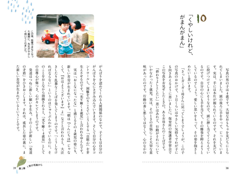 0歳から5歳までの心と身体の発達の道すじを、たくさんの写真とともに、子どもの表情や指先、行動、言葉からよみときます。