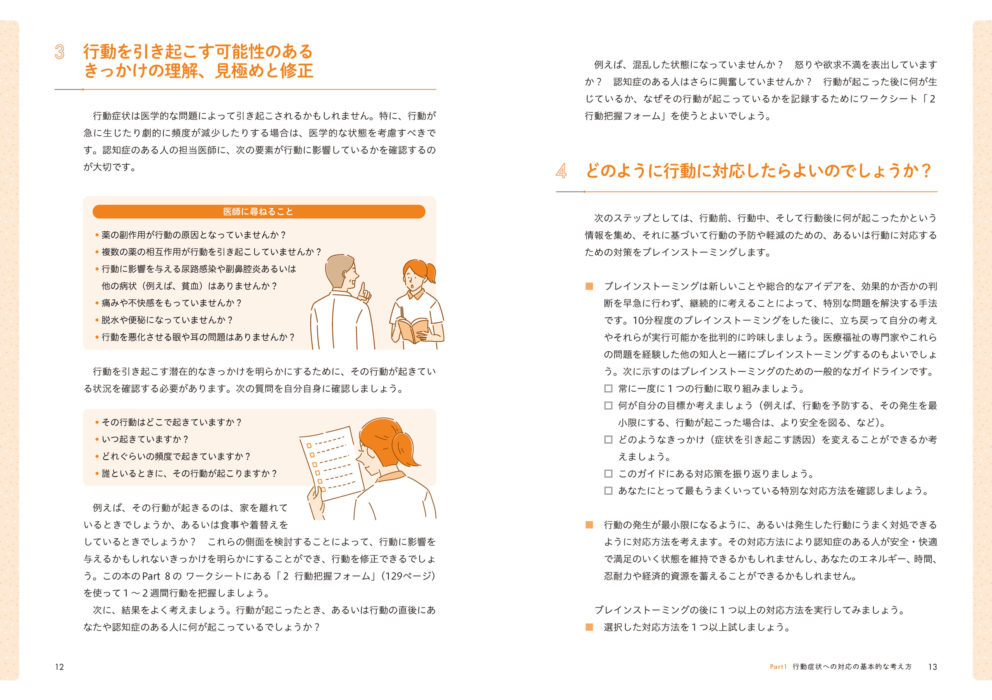 認知症のある人や直接介護する家族、介護士だけでなく、作業療法士、理学療法士、看護師など専門職に役立つ、幅広い内容の対応方法を集めたガイドブック。