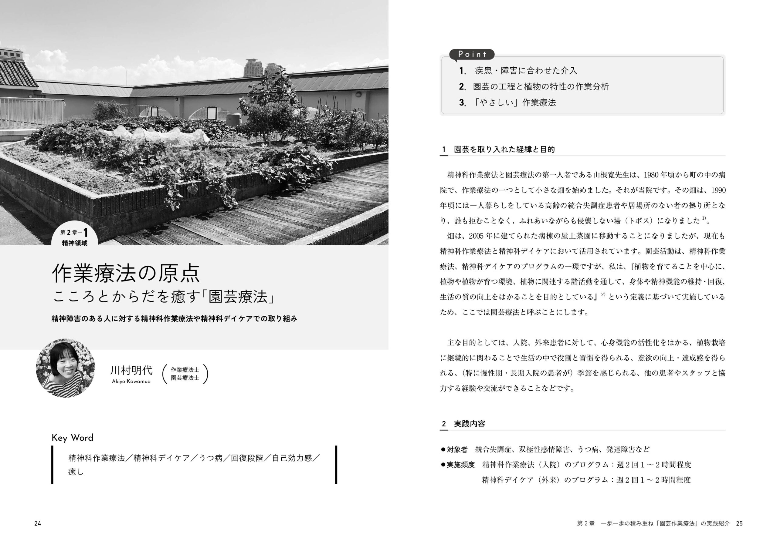川村 明代 公益財団法人浅香山病院 デイケア室(執筆時)、大阪河﨑リハビリテーション大学リハビリテーション学部助教/作業療法士/園芸療法士