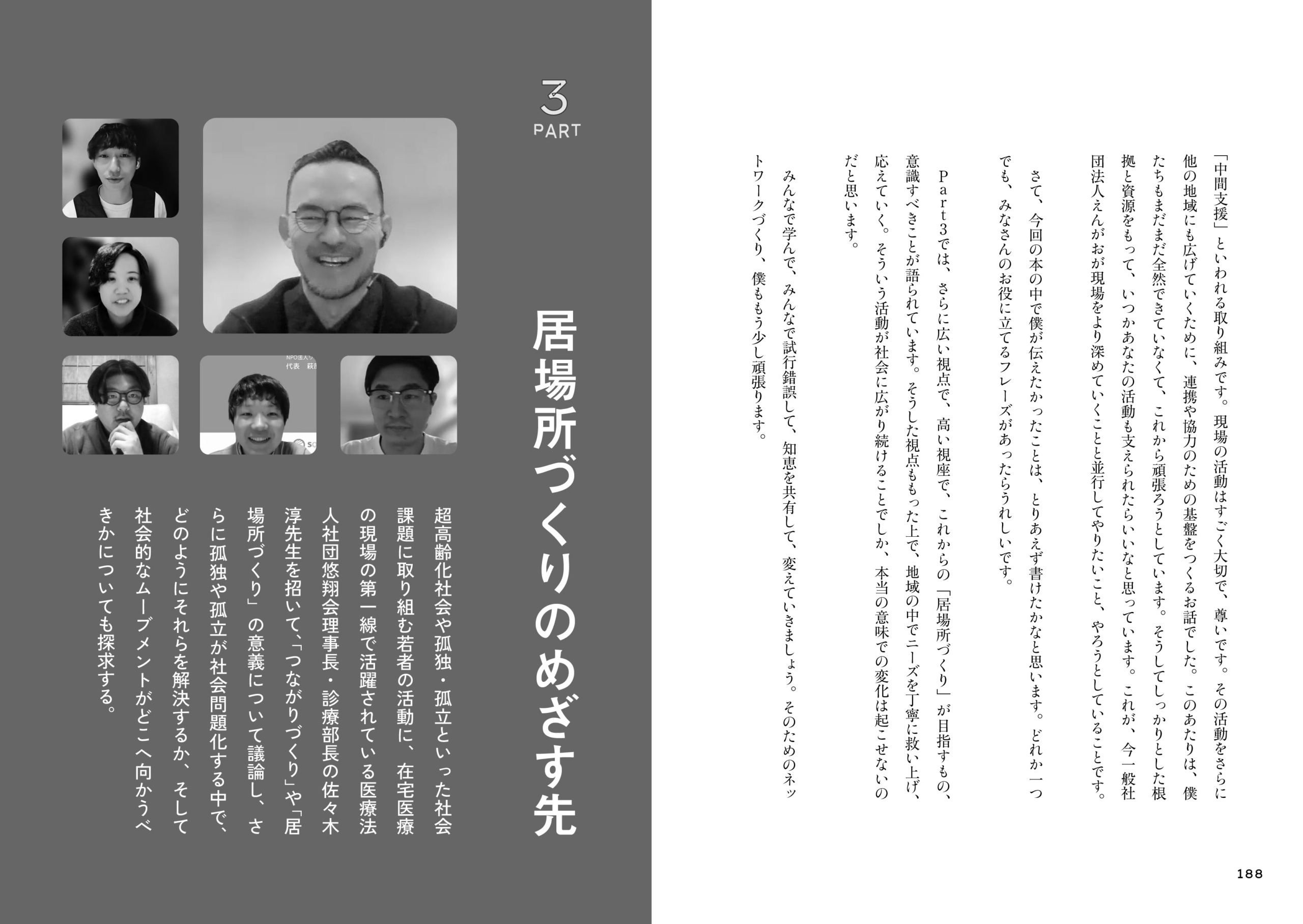 でも大丈夫です。この本で、仲間に出会えます。実際に会わなくても、こうして「本」という人類史上最も尊い発明によって僕らはつながって、一緒に悩み、一緒に試行錯誤することができます。 さあ、仲間に会いに行きましょう。
