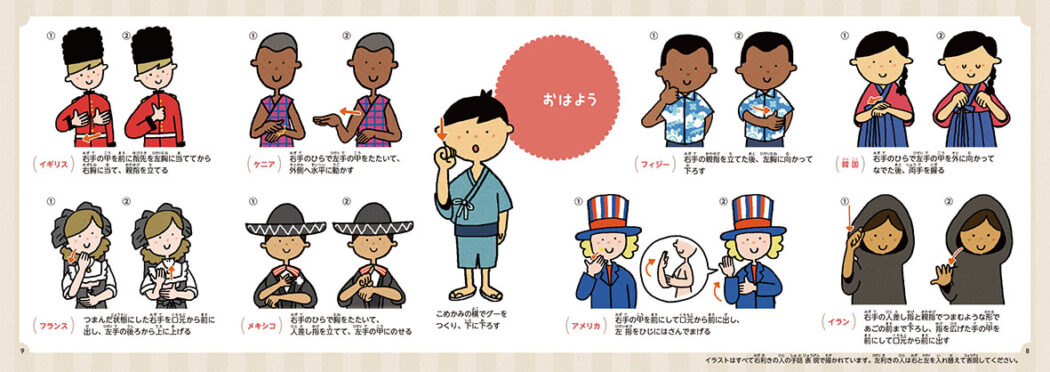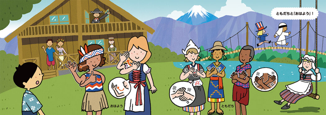 さまざまな国の「あいさつ」を覚えて手話で世界のともだちを広げよう。
